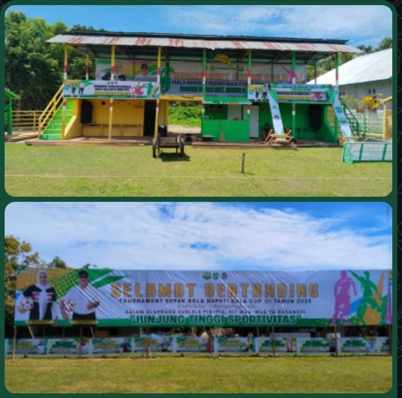 Sanana, Kepulauan Sula – Dua hari menjelang dimulainya turnamen sepak bola bergengsi Bupati Sula Cup III 2025, panitia pelaksana terus memaksimalkan persiapan di stadion utama. Seluruh fasilitas pendukung dipastikan siap digunakan demi kelancaran pertandingan yang akan diikuti klub-klub terbaik dari berbagai kecamatan di Kabupaten Kepulauan Sula.